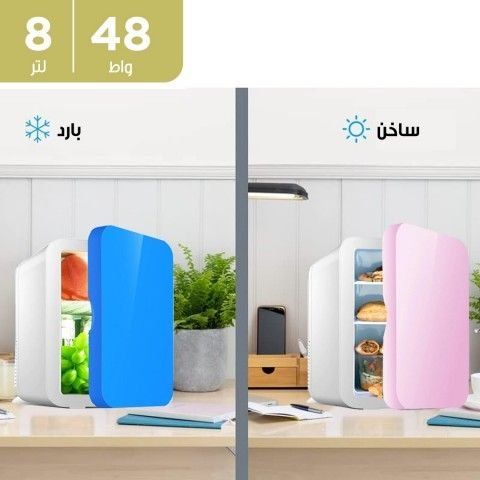 ثلاجة صغيرة بسعة 8 لتر مناسبة تمامًا للسيارة أو للاستخدام في المنزل. يمكنك استخدامها لحفظ مستحضرات التجميل التي يجب أن تبقى باردة. تكفي لاستيعاب 4 عبوات مياه بسعة 500 مل أو 8 عبوات سعة 330 مل. كما يمكن تحويلها لسخان لتسخين المشروبات والمأكولات بضغطة واحدة فقط